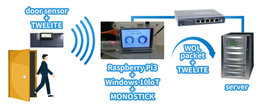 - ドア開状態を受信したRaspberry Pi3がWOLパケットを送出